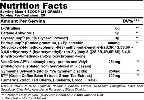 - Caffeine Anhydrous: May increase alertness, energy, and performance.