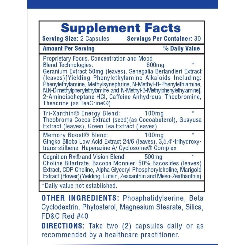 Proprietary Focus, Concentration and Mood Blend Technologies: special blend of ingredients designed to help with focus, concentration, and mood.